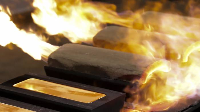 The Russian Gekras有色金属 plant in Krasnoyarsk is currently casting gold bars.